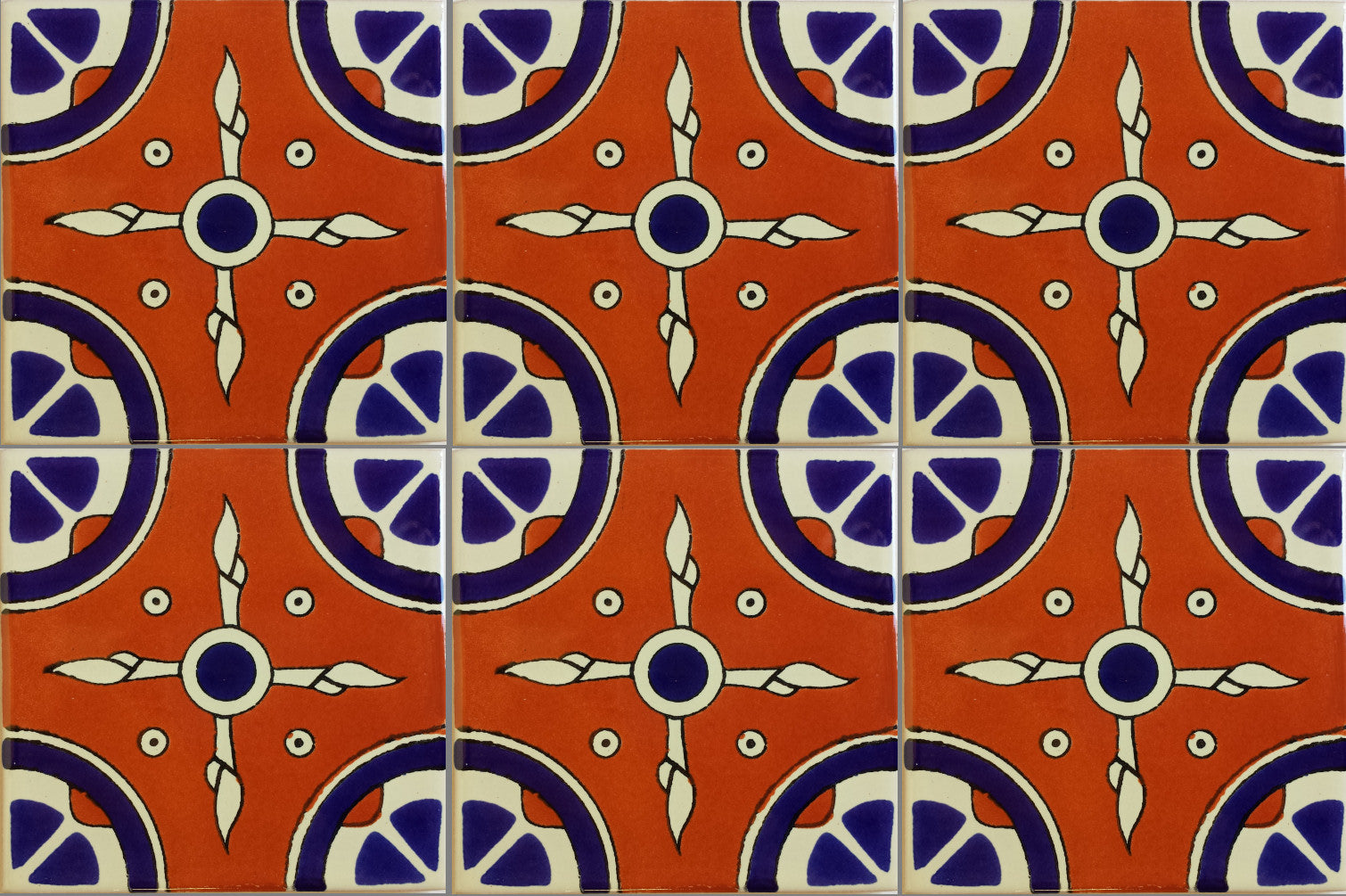 This tile has a predominantly brownish background color. A dark blue circle is created when four or more are put together. Mexican Talavera ceramic is the result of a mixture of cultures over the time. The Spaniards were influenced by Arabic pottery, they brought it to Mexico and the mixture of cultures gave as result these beatiful art in ceramic. This ceramic tile is just an example of the exquisite beauty the Mexican craftsmen put on each item they create. It is handpainted, this means that no two tiles are exactly alike! There might be small differences in size, weight and even the paintings. If you want to delight somebody special with an unique handcrafted gift, this is what you are looking for! This tile is special for small patches or entire wall decoration. All of our Mexican tiles background is painted in ""Mexican white"", which is an off white, creamy color.DISCLAIMER:All of our Talavera tiles have a heavily hand-made process involved; as such, imperfections are expected. Color variations are to be expected from batch to batch. What you see on your screen might not be exactly what you will get, this is mostly due to several factors, among others: lighting when the picture was taken, lighting in your own monitor, but mostly changes in the glazes used between batches. All these factors are beyond our control. If in doubt, we recommend you to order a sample before committing to a bigger order. This tile has limited outdoors use, we don't recommend its use on temperatures under 40 degrees. It is not frost-proof. It is not suitable for inside pools as the chemicals involved on water cleaning will destroy the clay.